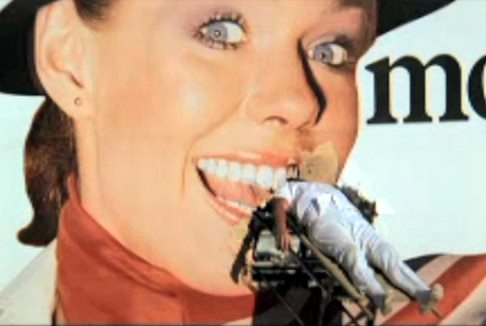 Many people notice that the man struggling with James Bond ends up in mouth of the woman on the British Airways billboard, looking like a bizarre cigarette dangling from her lips.
