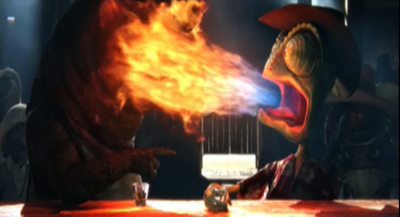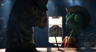 In one particularly disturbing scene, Rango responds to his discomfort around the cigar-smoking Bad Bill (Ray Winstone) by grabbing the cigar and actually eating it.