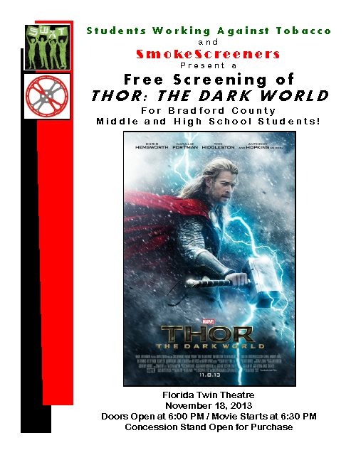 This film was reviewed by Jenna Hewett of QDREF on November 18, 2013. The film was reviewed as part of a Students Working Against Tobacco (SWAT) recruiting event in Starke, Florida.